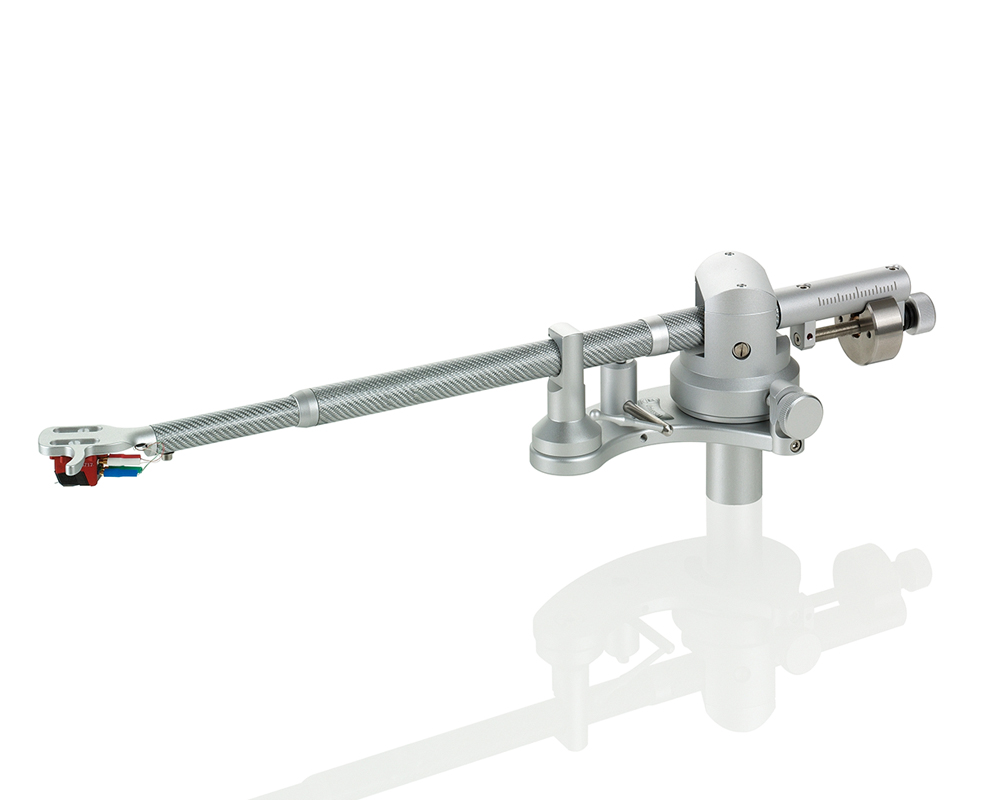 The Universal 12 comes with easily interchangeable, multiple counterweights, allowing you to optimally position the mass close to the pivot point. The counterweight is underslung providing an optimal center of gravity and allowing fine adjustment of the tracking force. Its aluminum one-piece headshell provides a stable mounting platform for your phono cartridge and allows for accurate azimuth adjustment to maximize stereo separation. The magnetic anti-skating force is mechanically decoupled and adjustable by way of a locking thumb screw.